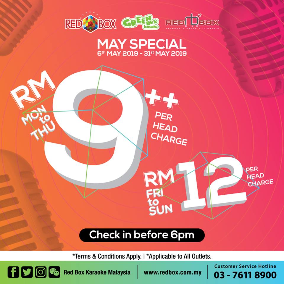 现在,Red Box Karaoke推出五月份优惠,一个人最底只需支付RM9就可以去唱K 3小时啦!!!