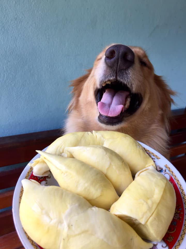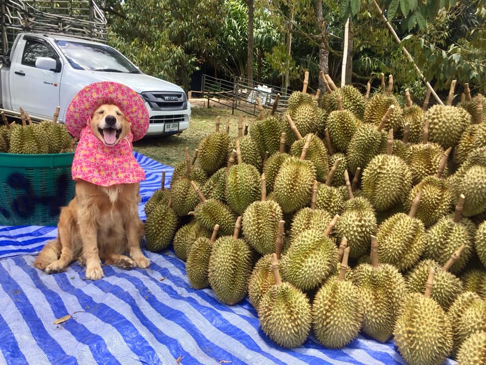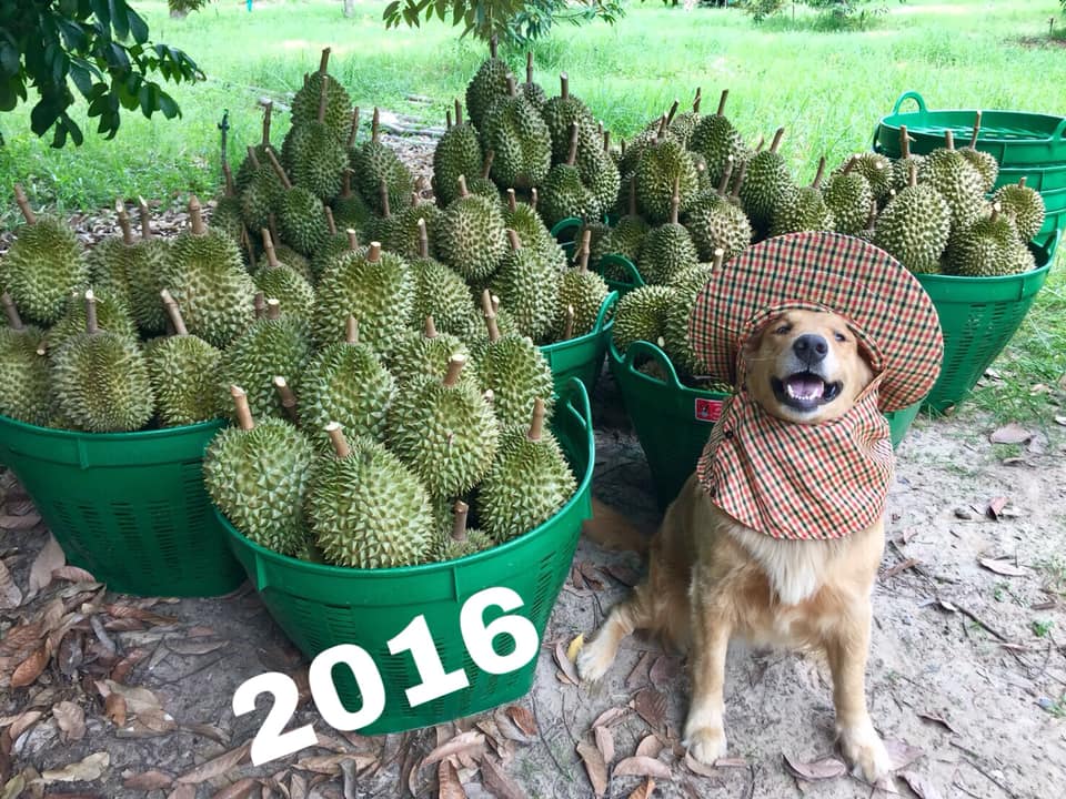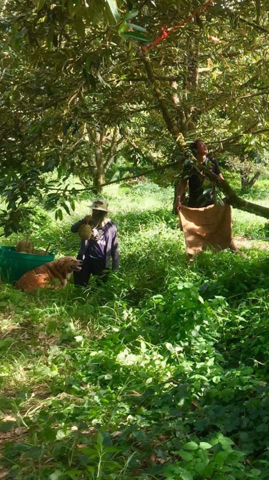 有时候,它会和它的主人一起去果园检查榴莲树及其收成的品质!