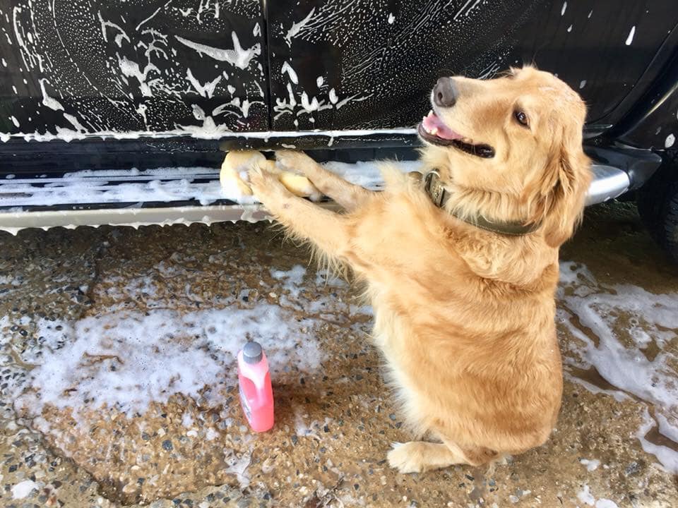 它的主人说:“就算不是榴莲收成的季节,它也没有失业!它还会帮忙洗车!”