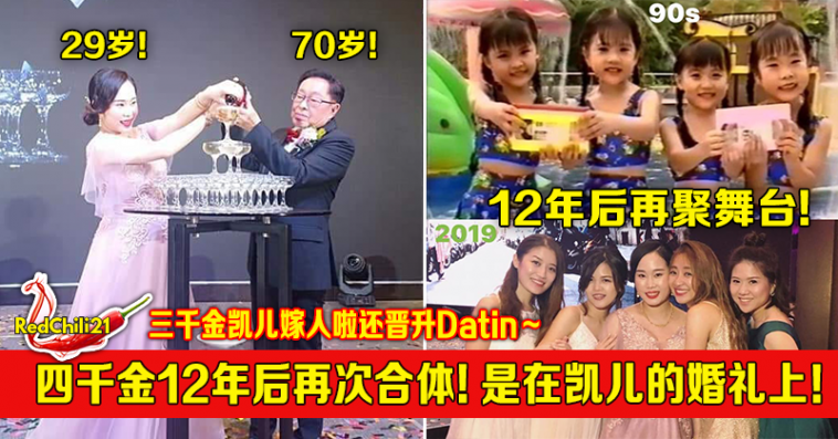 相信马来西亚子民都有听过「四千金」!她们就是我们小时候的偶像啊~小时候总哼着他们的歌,听着他们的歌声长大!长大后的敏儿、凯儿、君儿和红儿都各自过着精彩的人生,今日凯儿结婚啦!