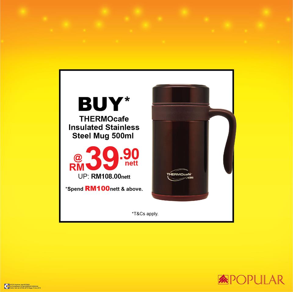 ▼若消费满RM 100或以上,即可以RM 39.90的价格来购买500 mL的THERMOcafe 不锈钢保温杯(原价RM 108)!