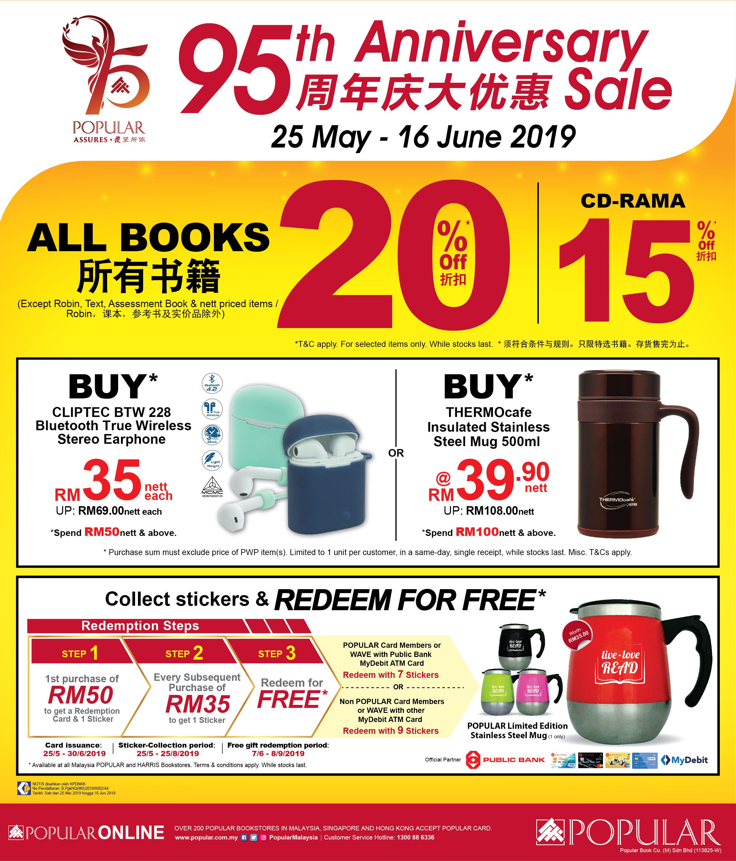 如果你是大众书局会员或者拥有Public Bank MyDebit ATM Card(Wave),只需集满7张即可免费兑换限量版不锈钢保温杯;