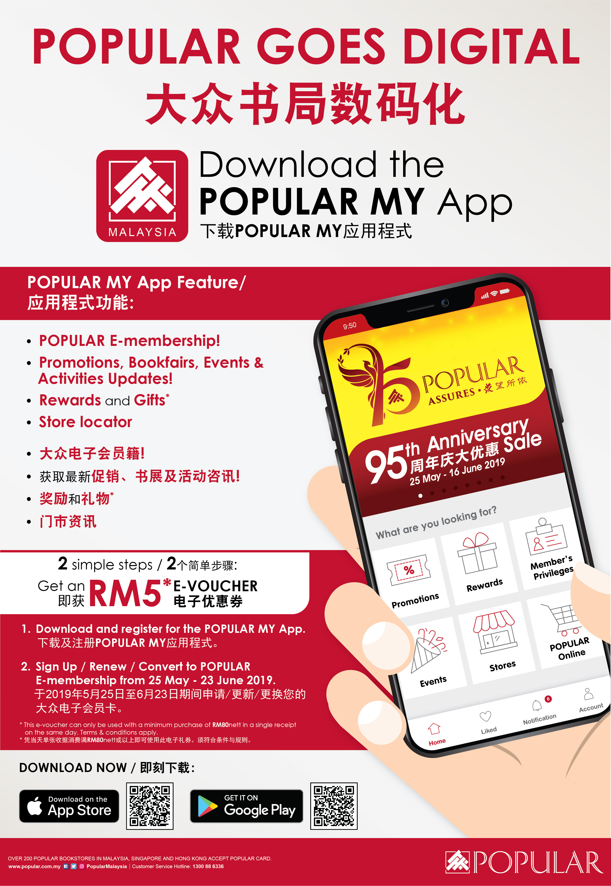 ▼使用Popular My应用程式也可获取RM 5的电子优惠券!
