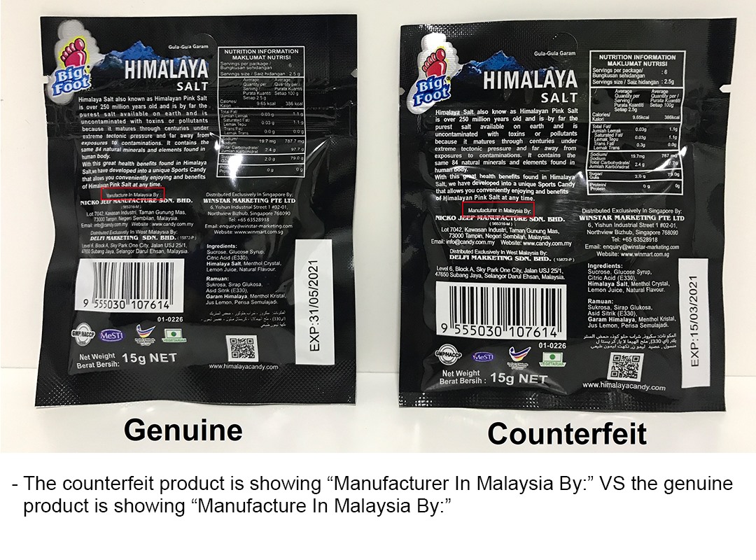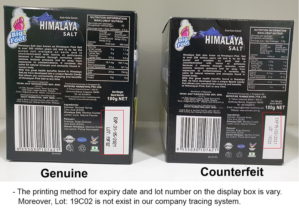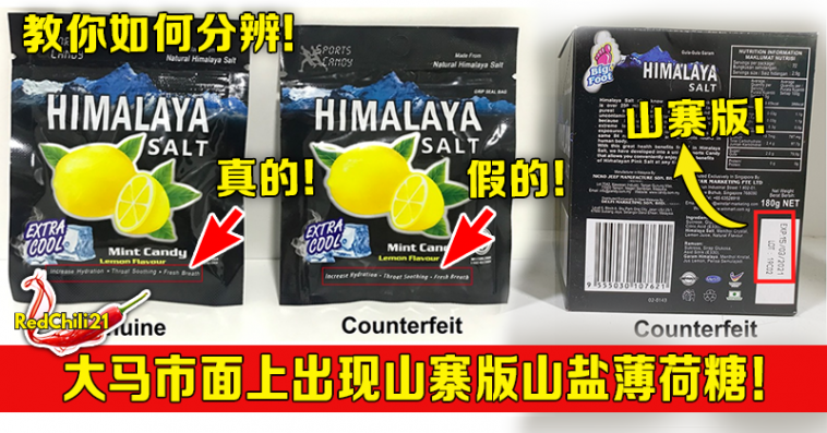 这款糖果相信只要是马来西亚人都会看过,然而就在几日前这款糖果的面子书专业BIG FOOT MALAYSIA在面子书发布指出国内出现“山寨版”喜马拉雅山盐薄荷糖!