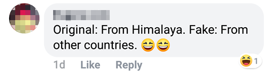 ▼ 这位网民也开玩笑说其实真正的是从喜马拉雅来的,其他国家的都是假的!