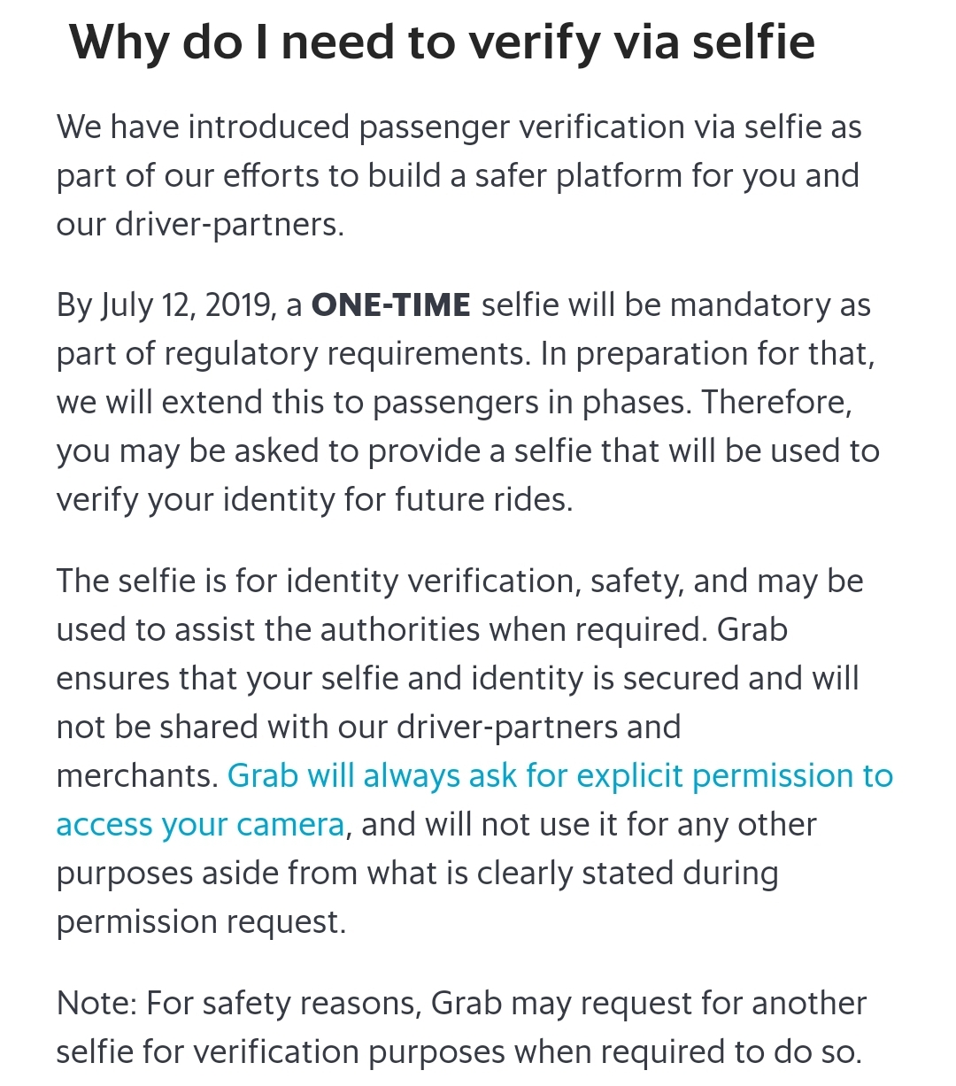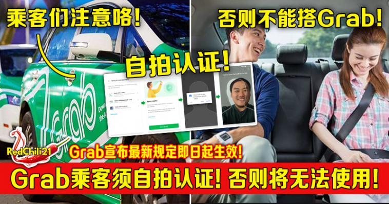 注意咯!Grab 官方已发文宣布:即日起所有 Grab 的乘客都必须进行一次性拍照认证,否则从7月12日起将无法使用 Grab 搭车了!