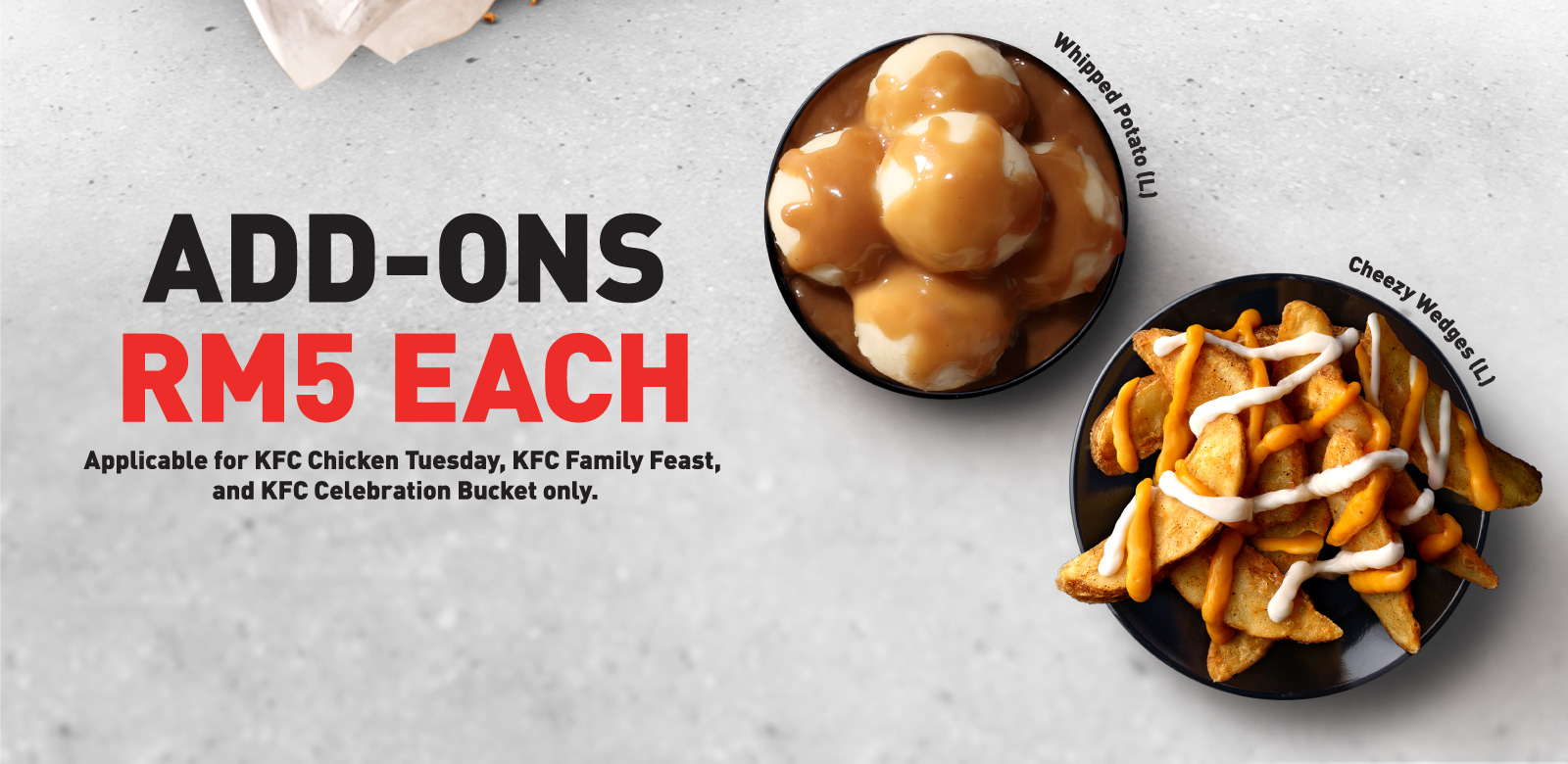 ▼ 只要多付 RM5,就可以加点(add-on)Whipped Potato(L) 或 Cheezy Wedges(L) 哦!