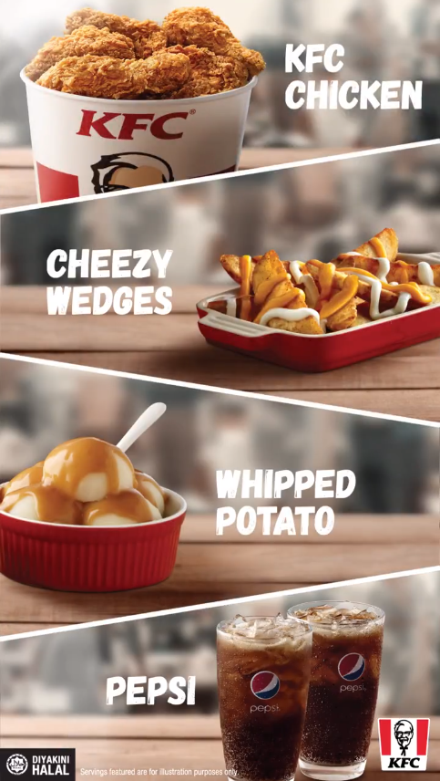内容:5 块鸡(原味/香辣)+ 薯泥(L)+ Cheezy Wedges(L)+ 2 杯 PEPSI(R)