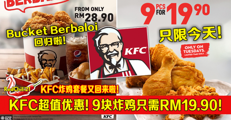 早前KFC曾经推出的「9 块炸鸡只需RM19.90」的限时优惠,如今又回来啦~