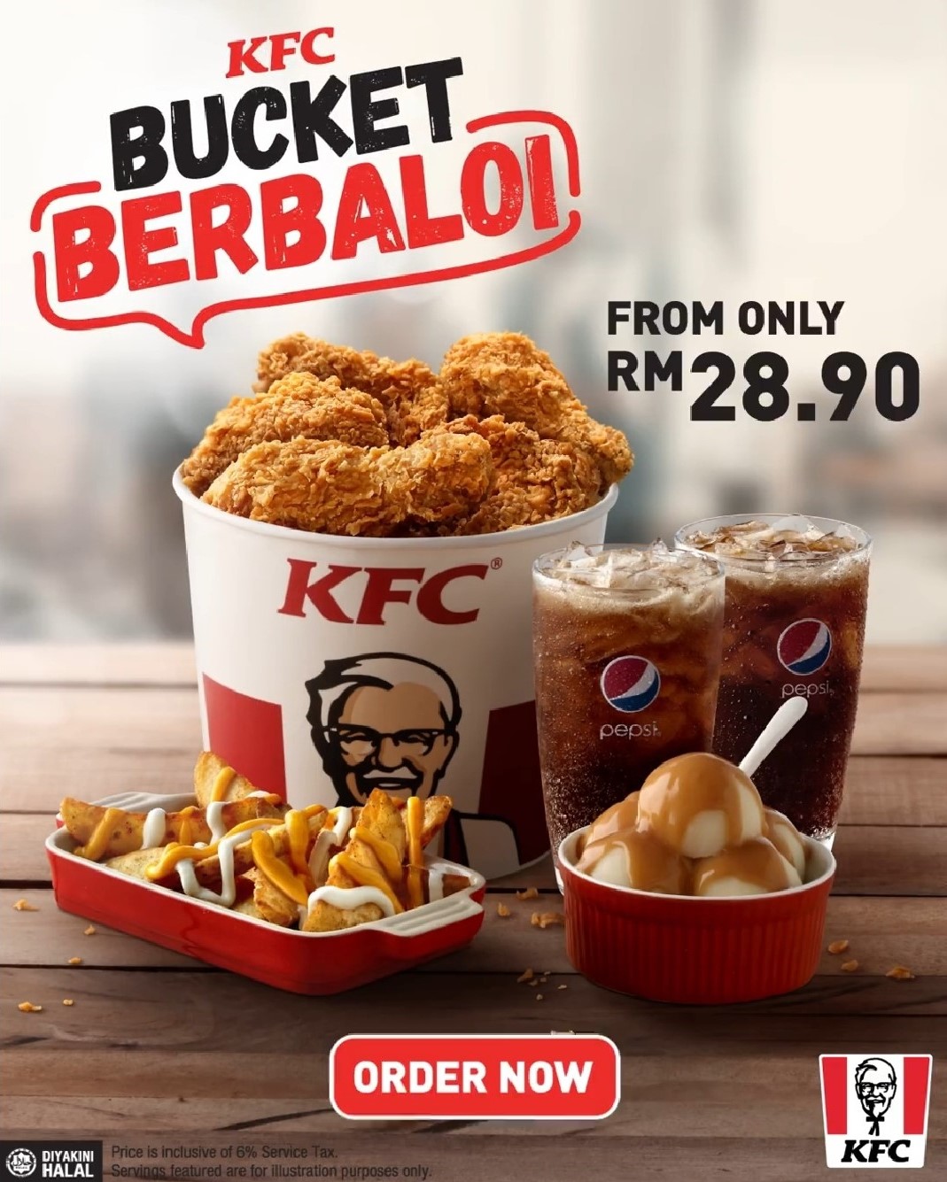 促销活动:KFC Bucket Berbaloi 只需 RM28.90