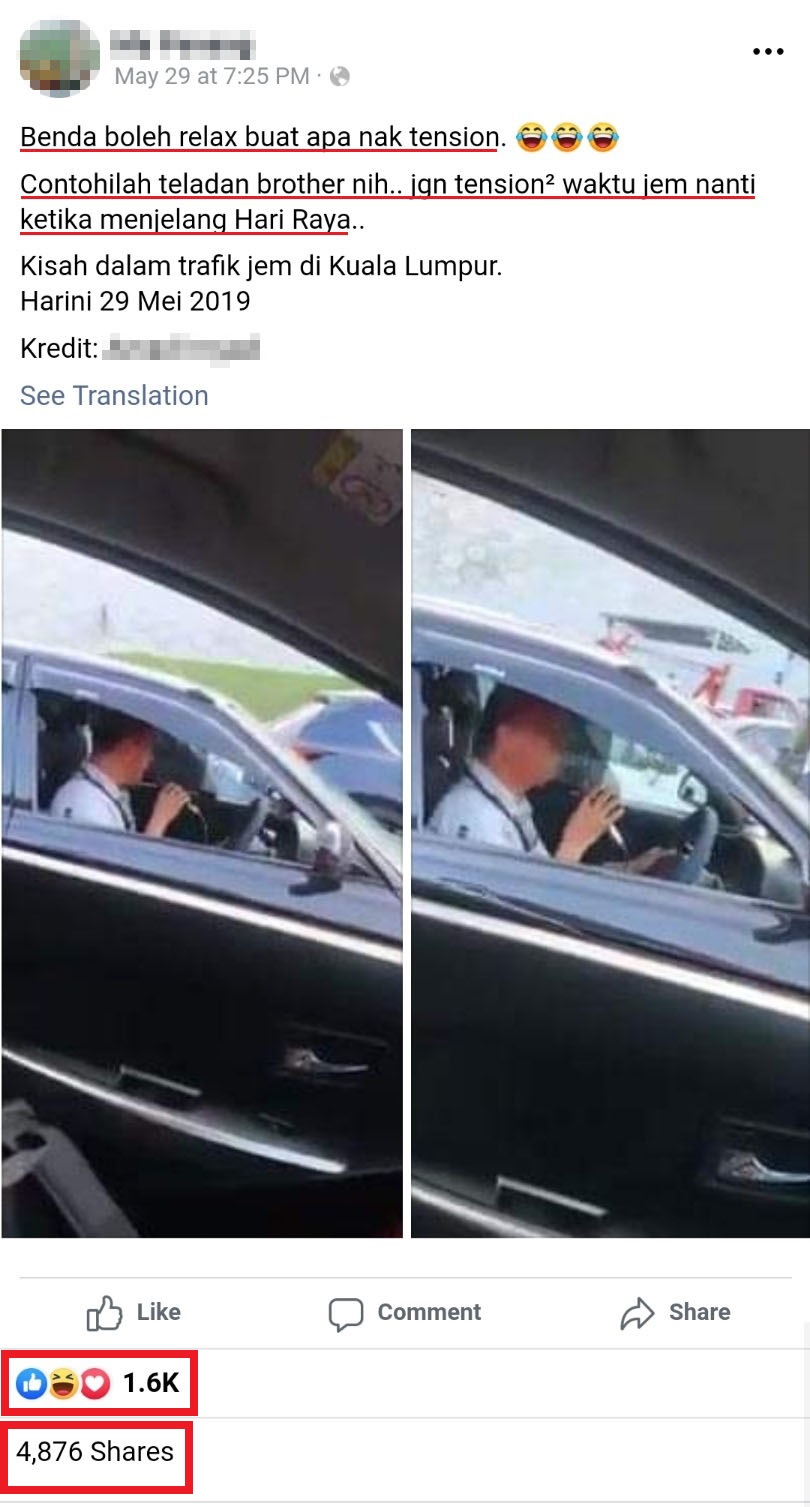 日前一名大马网友就在网上分享一则帖文,塞车时竟然看到一位大叔在车上唱K!