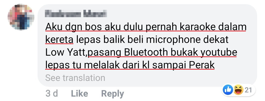 ▼「我和我的老板也曾经在车上唱K,从吉隆坡唱到霹雳州!」