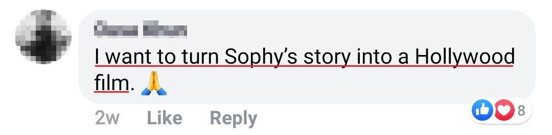 ▼「希望 Sophy 的故事能被拍成好莱坞电影!」