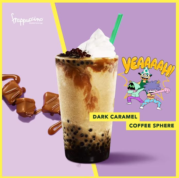 这款Dark Caramel Coffee Sphere饮料是使用了Brazilian 咖啡制成! 将星巴克的招牌咖啡和黄油焦糖酱结合。在加上了星巴克特制的“珍珠”,光听都觉得超好喝!