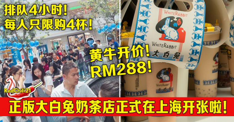 据当地媒体报道,从第二日起,大白兔奶茶店就开启了“地狱”排队模式,排队时间至少4个小时,黄牛加价每杯50元人民币(大约RM30),这意味着要花70元人民币(大约RM42)左右才能喝到一杯奶茶。