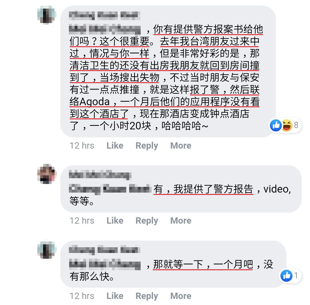5点下午回到酒店之后老板依然和我们说他们会让员工拿回属于的物品归还给我们。结果老板没有办法之下打了给警察,警察来到之后就要准备将犯人带回警局,我们需要去警局下口供,也是等。到12:30凌晨终于可以去吃我们的晚餐。11/6/2019 下午4点又被酒店人call回去,要求我们回酒店配合警察调查和拿指纹等等。同时也问老板到底会怎样解决和赔偿我们的财物,老板说酒店没有现金。在最后一天12号早上经理让我们1:30下午回去酒店见面,到了酒店没有经理也没有老板,我们问他们的员工根本联系不到经理,我们等到大概3:30发现不对劲,他们根本没有要交代和负责任,就不了了之。结果我们也迟了搭飞机,也浪费了我们的时间和飞机票。我这里要让大家知道这家酒店的老板是多么的无耻,这样对待自己的客人,我肯请大家千万不要入住这家酒店。我会把我以上的证据,一直在媒体发放直到等到一个公平的对待!