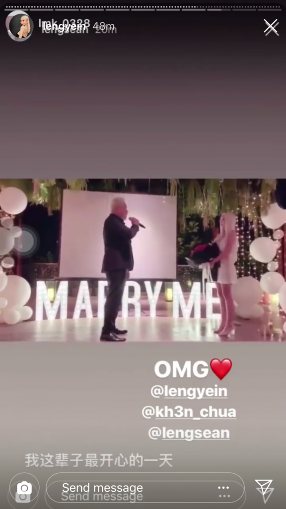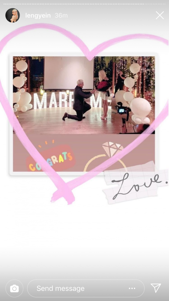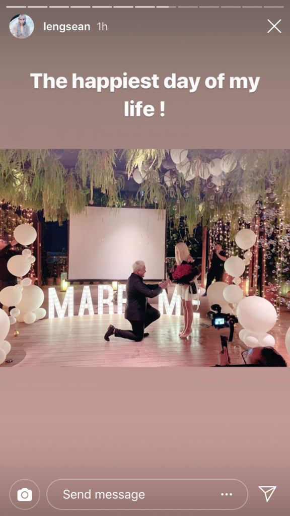 只是相爱5个月的他们终于来到了求婚这一天!今晚lengsean事先把姐姐被黑哥求婚的视频放在她的IG Story!