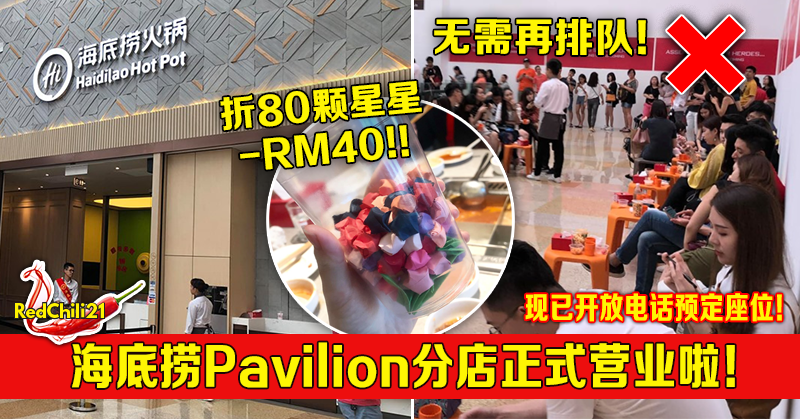 海底捞Pavilion分店正式营业啦!现已开放电话预定座位!