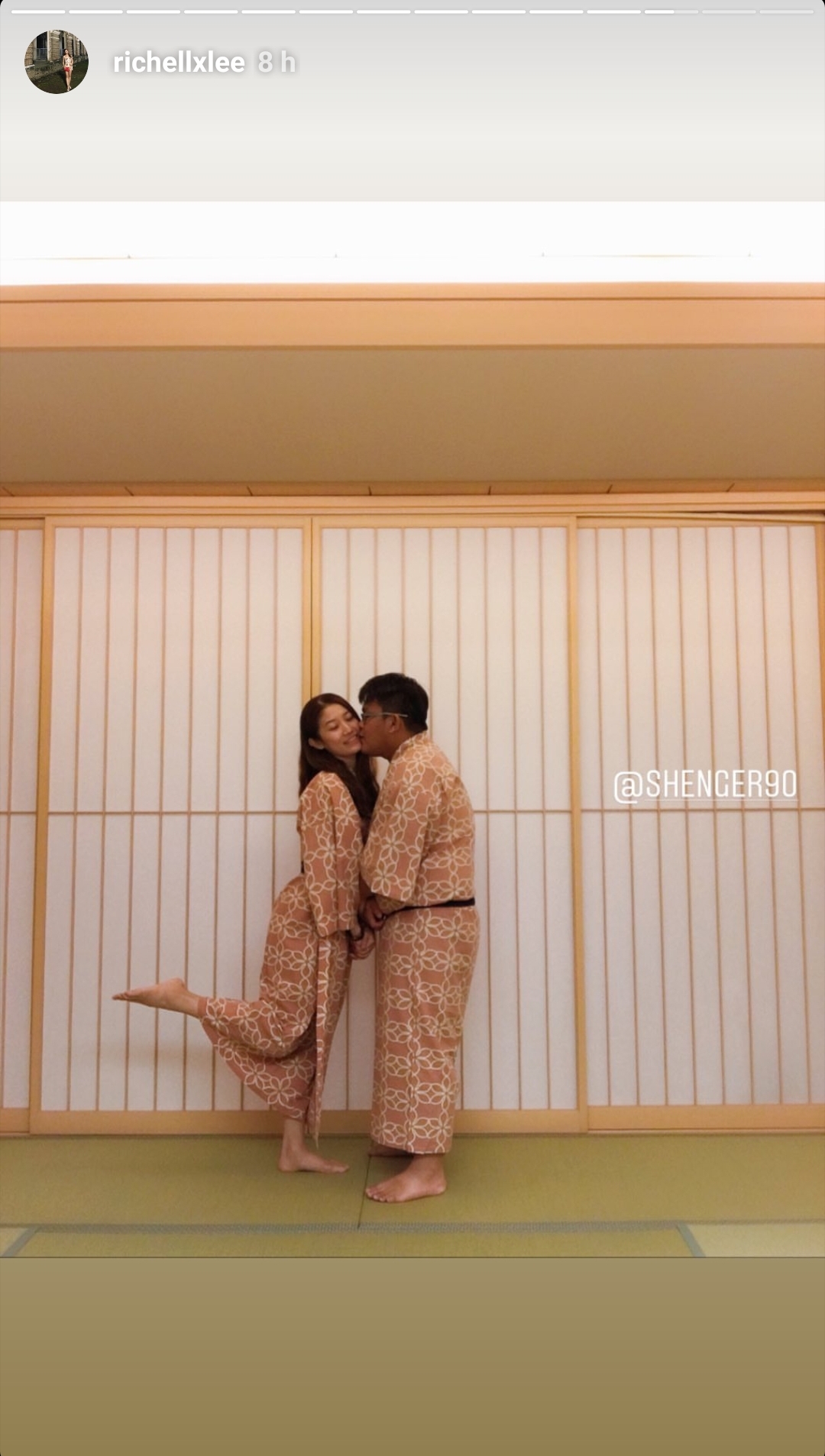 两人的照片也是在日本富士山的酒店内拍摄,男友把红儿抱起,身穿日本浴衣的红儿举起Yeah手势,从他们的笑容就可以感觉到他们有多幸福甜蜜啦~