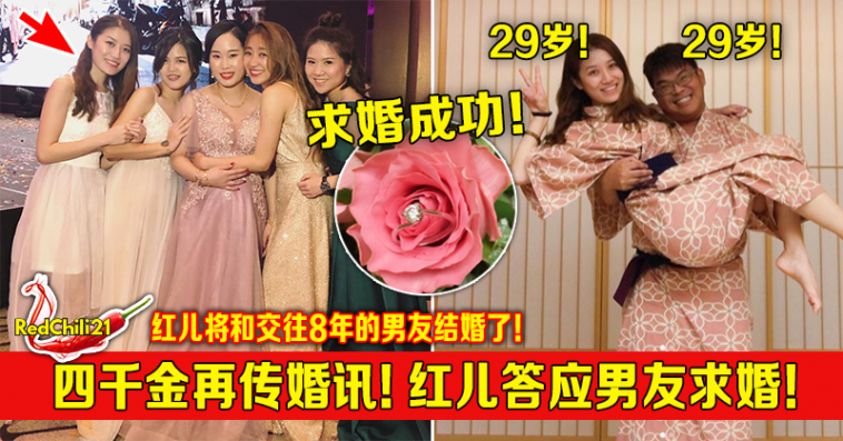 大马的四千金再度传出喜讯啦~ 继君儿和凯儿陆续都嫁人以后,红儿也在近日被求婚成功了!
