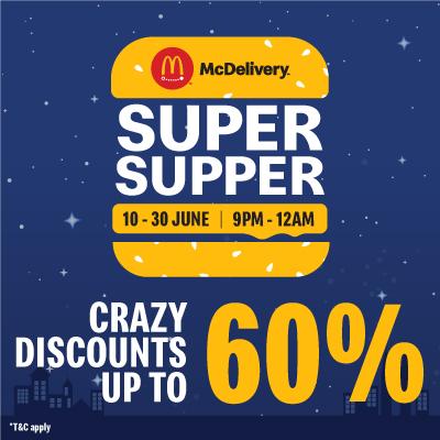 这次的McDonald Super Supper让大家宵夜期间肚子饿时在家也能享受到超便宜的促销折扣!