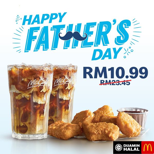 这次McDonald趁着父亲节期间推出父亲节套餐啦!2 x Iced Latte + 6 pcs Chicken McNuggets只需RM 10.99!