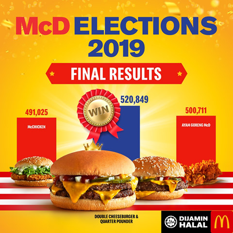 近日大马麦当劳举办了麦当劳美食选举活动,而今天选举结果已经揭晓啦,今年最受大马人欢迎的麦当劳美食,第一名就是 Double Cheeseburger !
