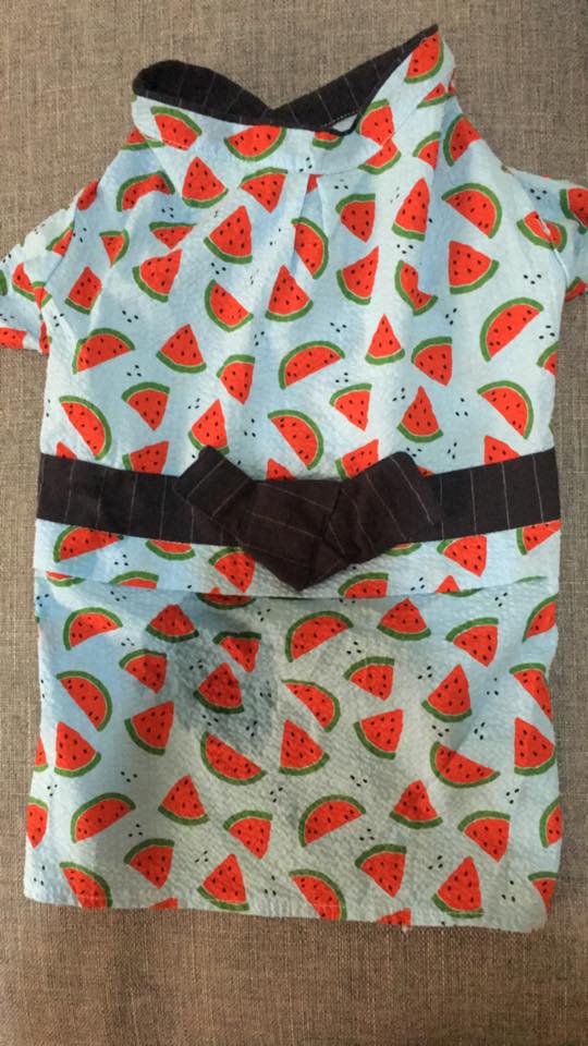 从照片可以看到,这件印满西瓜图案的浴衣,袖子那边的位置长得非常奇怪。