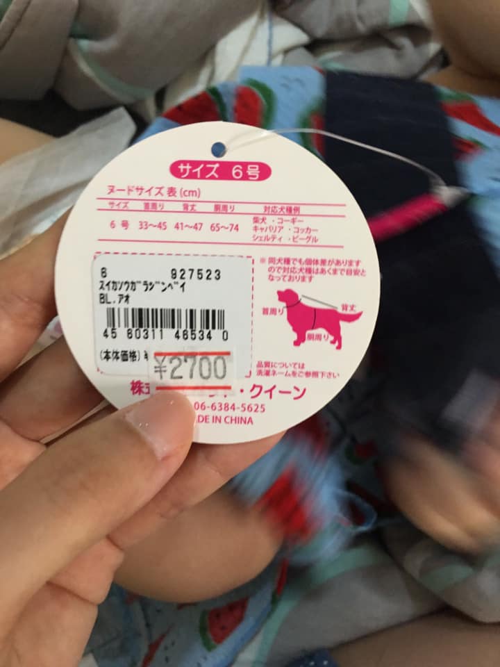 然而楼主在洗衣服时才发现衣服的剪裁很奇怪,谁知一看标签之下,才知道原来这是给小狗穿的衣服。是不是日本狗狗的衣服和宝宝衣服的材质一样好,才会让爸爸认不出!
