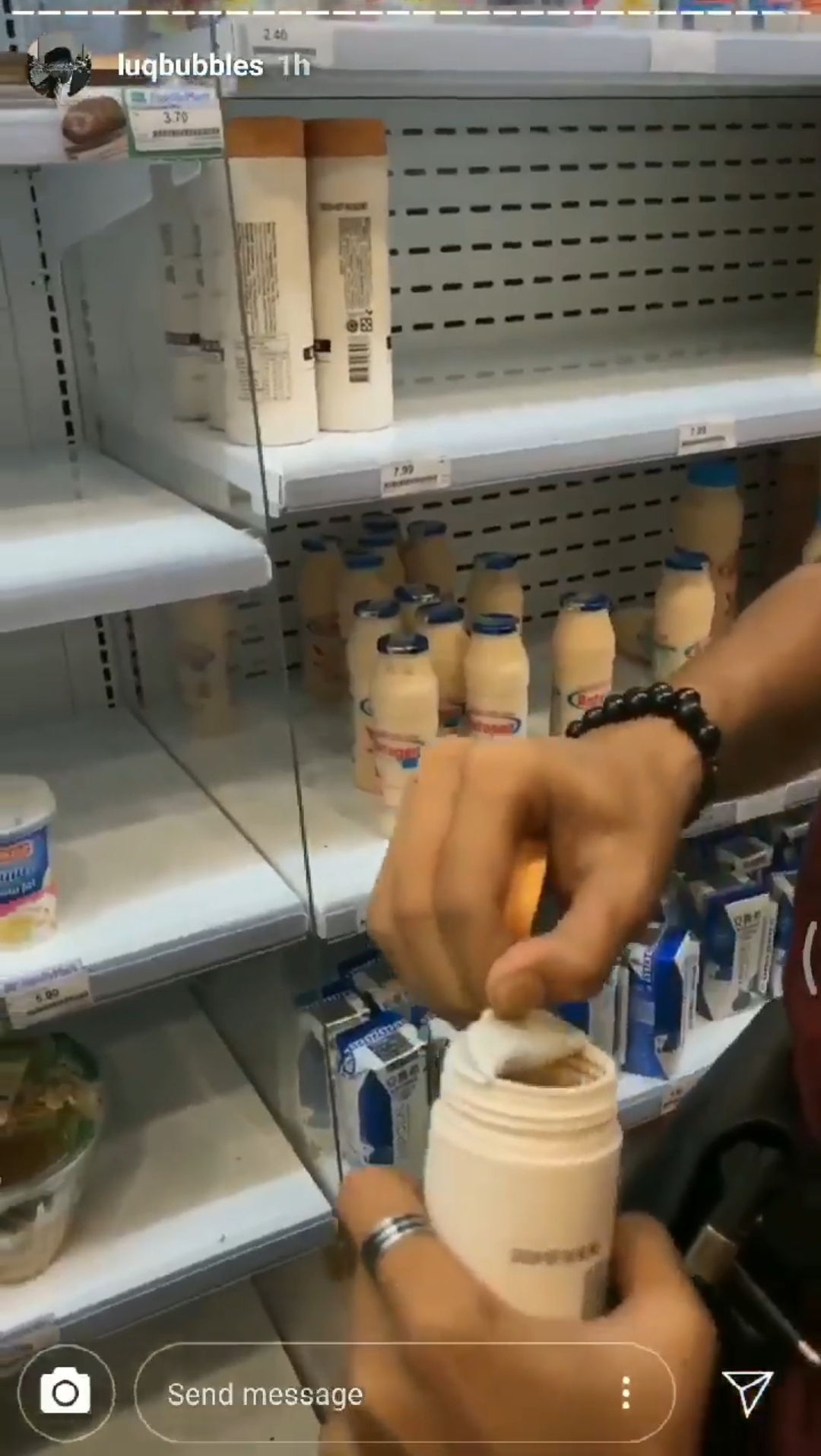 该视频是来自这些青年人的 Instagram Story,从视频里可以看到这些青年人在没有付款的情况下,在 Family Mart 的冰柜那里,大肆破坏食物和饮料。