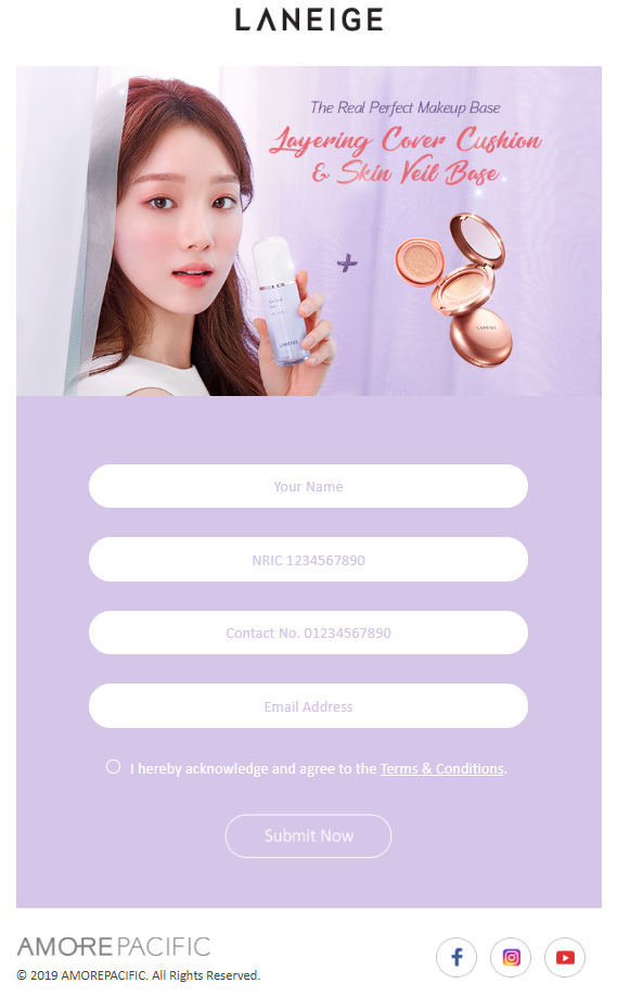 ▼方法很简单,首先到Laneige官网填写全部质料,然后submit上去就可以了。