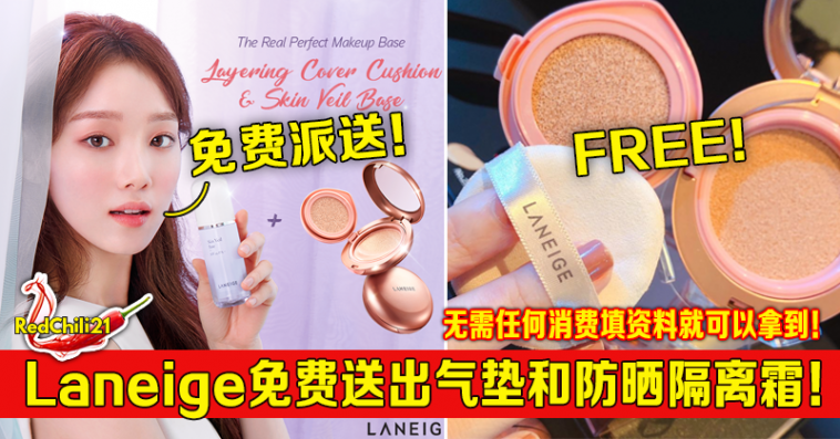 今天小编要告诉你一个好康哦!就是Laneige免费送出 Layering Cover Cushion气垫和 隔离防晒霜Skin Veil Base的样品啦!
