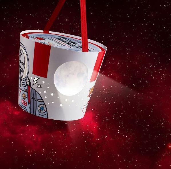 这个KFC所特别推出的「全桶」纸桶还能像灯笼一般发光,让你吃完了还能提着“灯笼”玩!