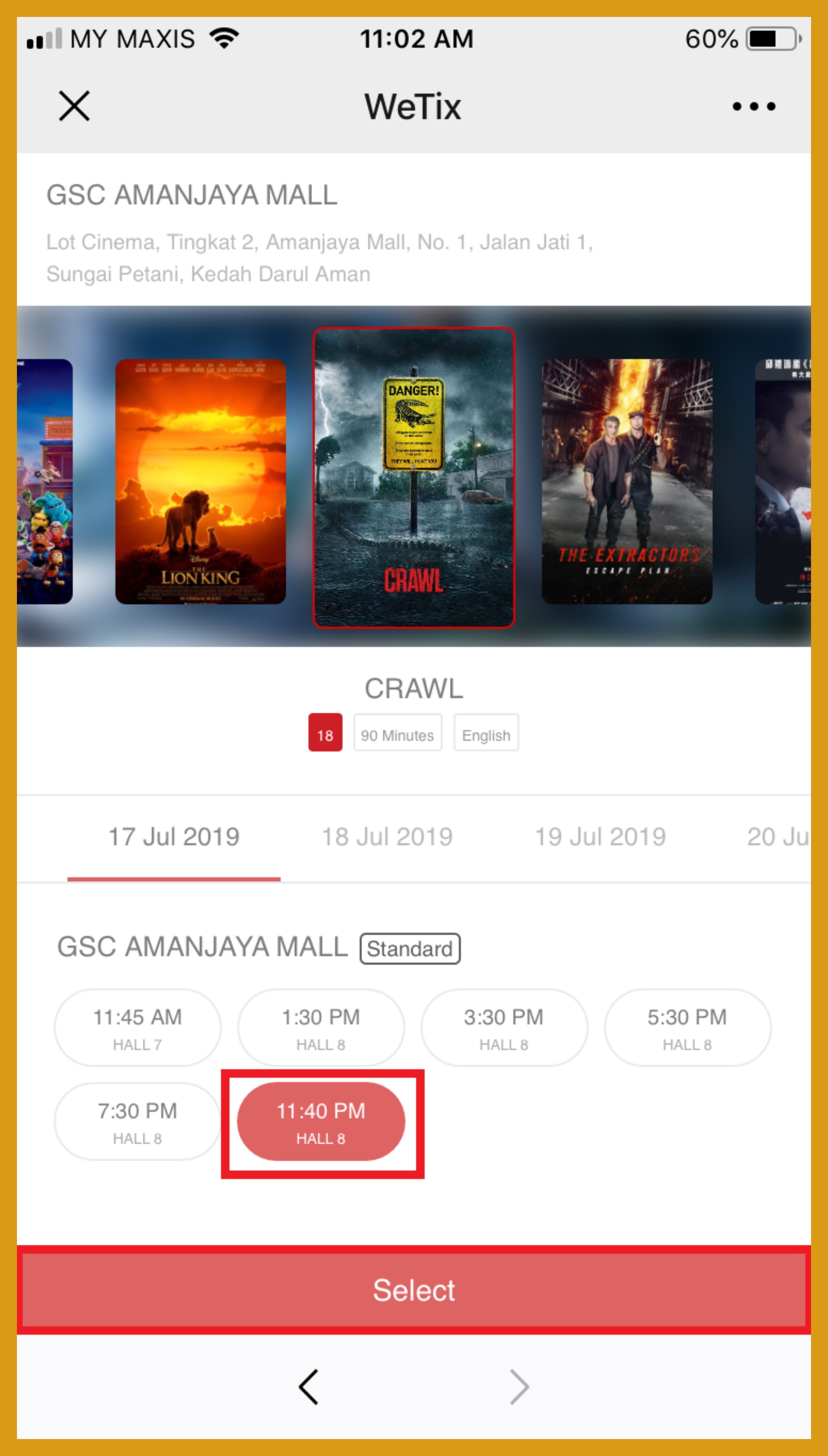 注意哦!每一家电影院的价格都略有不同,所以折扣RM8后的价格也是不一样的哦!