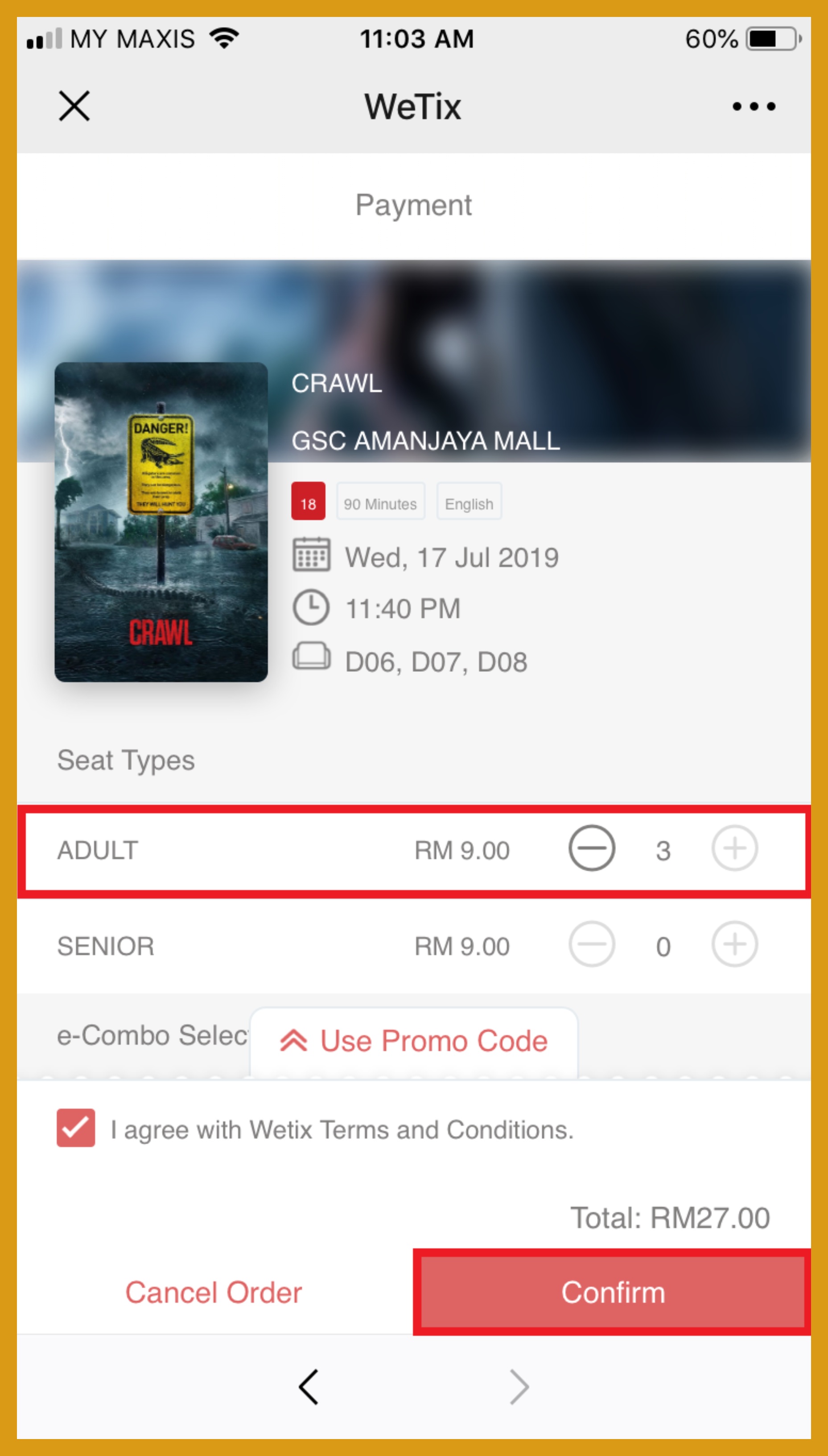 促销地点:全马 GSC,MBO,mmCineplexes 和 TGV电影院分行
