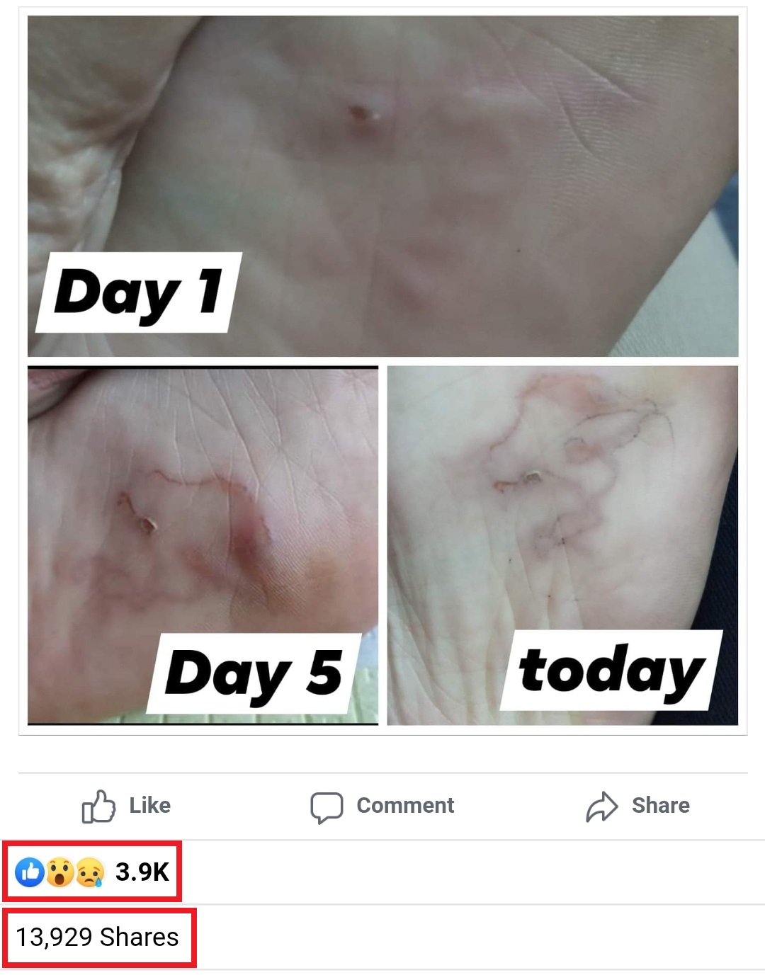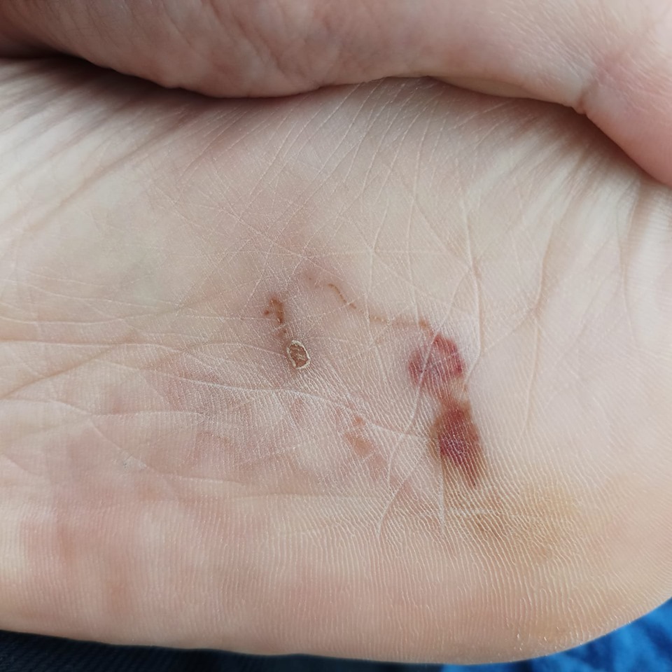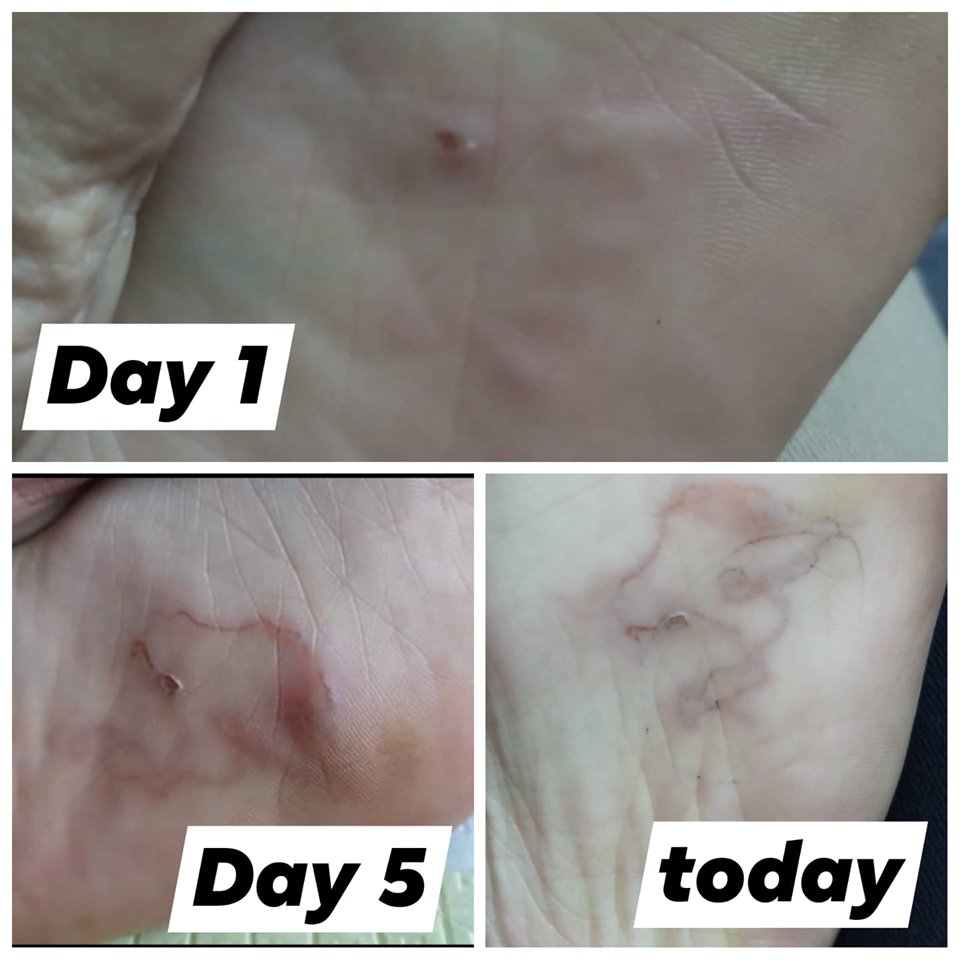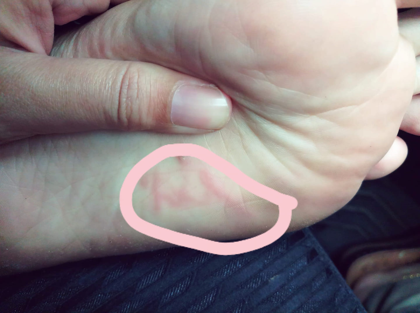 该女子认为是神经线的问题,所以就去了一趟脚底按摩。怎料,回来以后脚底的情况越来越严重,线条越来越明显,而且非常痒。