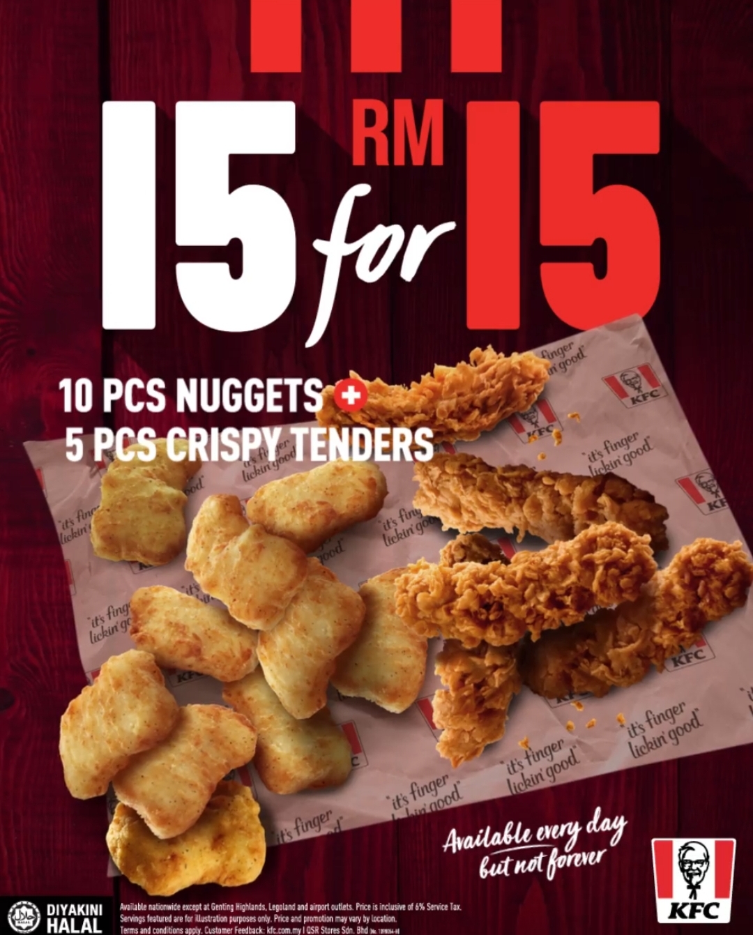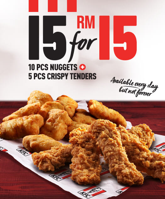 ② KFC 特别优惠!10块鸡肉块(Nuggets)+ 5块 Crispy Tenders 只需RM15!