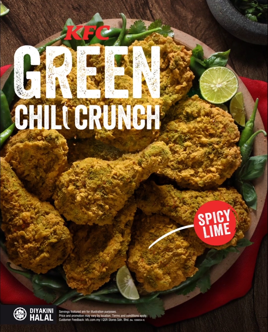 ③ KFC推出全新的 Green Chili Crunch 炸鸡!