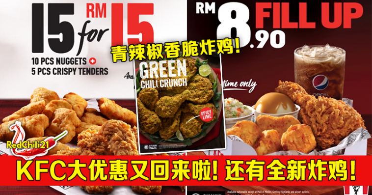想好今天的午餐和晚餐吃什么了吗?!不如就 KFC 吧!即日起,大马 KFC 的优惠又强势回归啦!此外,KFC还推出了全新的炸鸡口味!