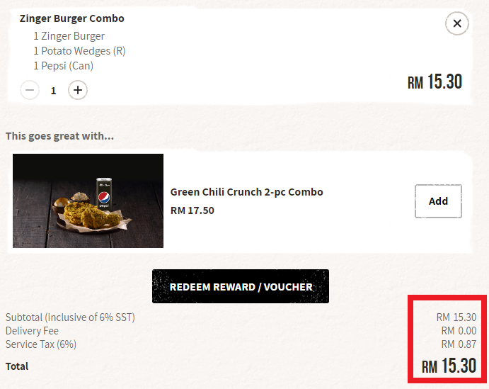 这时候再推出去就可以看见Delivery Fee是RM 0(也就是免费的啦)!