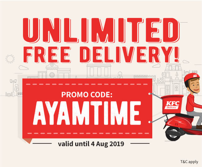 只要输入AYAMTIME就可以享有免费的外卖服务,而且是无限次的哦~在活动期间内,就算你早午晚餐都叫KFC外卖并使用这个Promo code都可以!