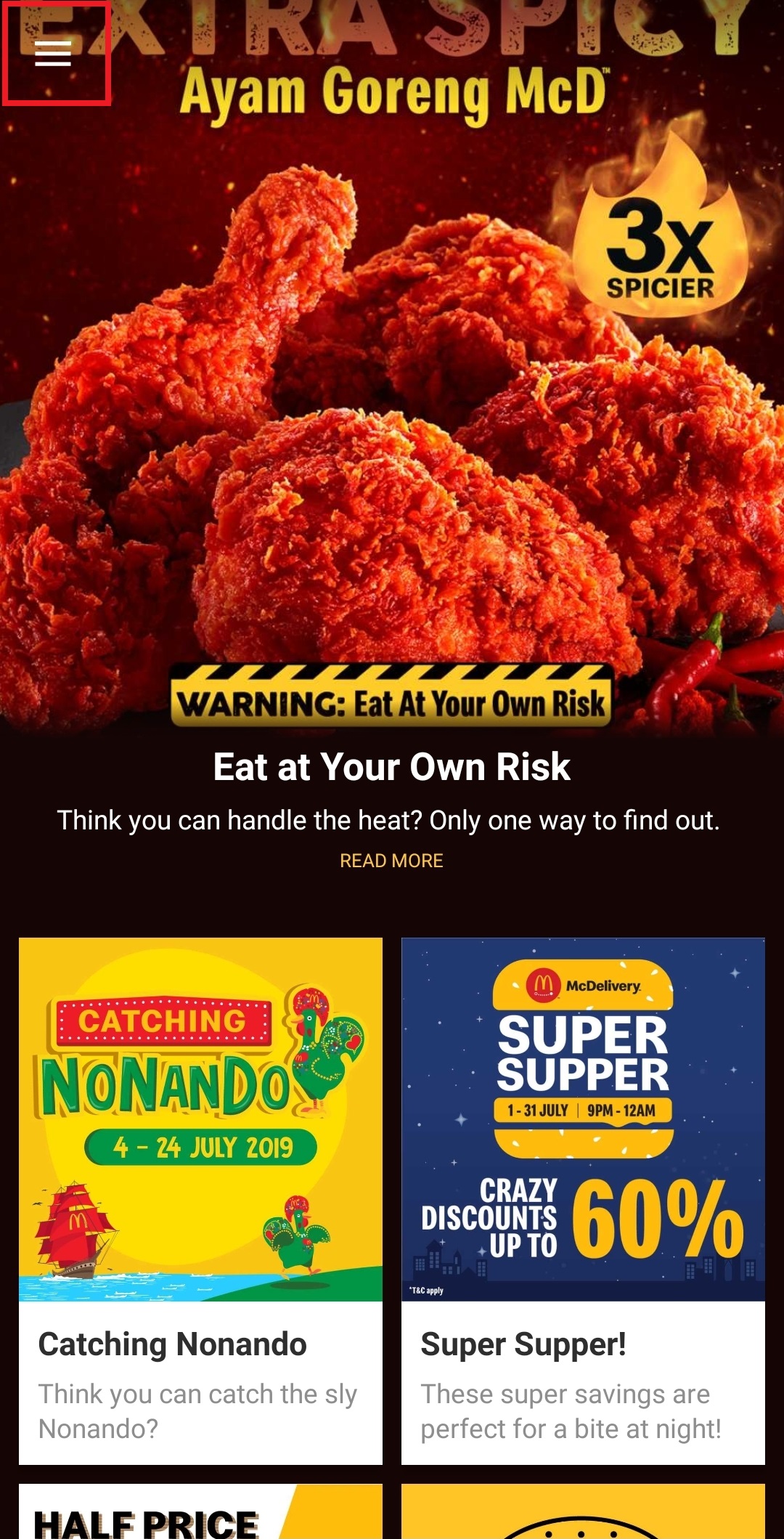 ▼ Step 1:打开手机的 McDonald’s App 并点击左上角的“Menu”。