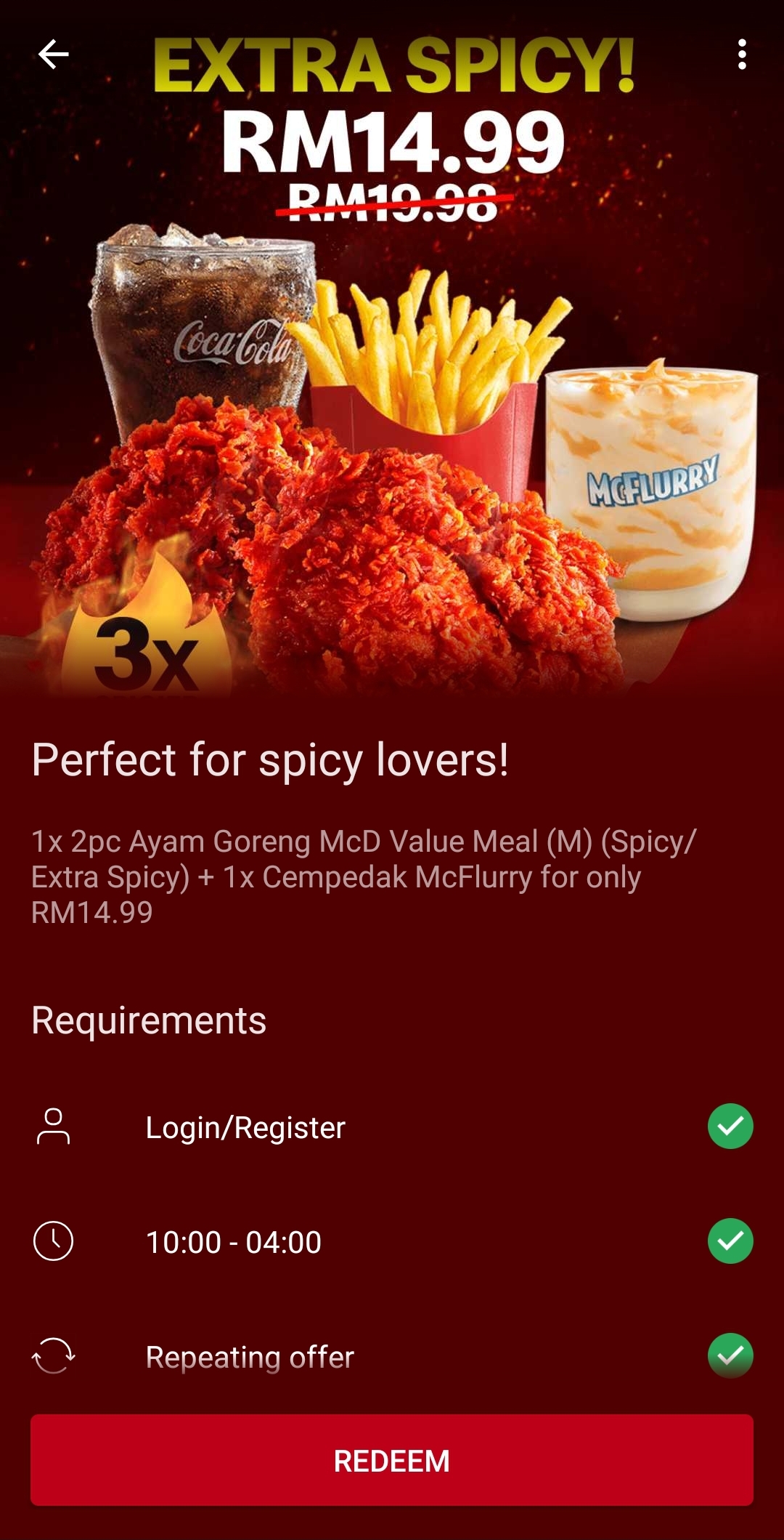 ▼ EXTRA SPICY Ayam Goreng McD特别套餐,现在只需RM14.99(原价 RM19.98)!