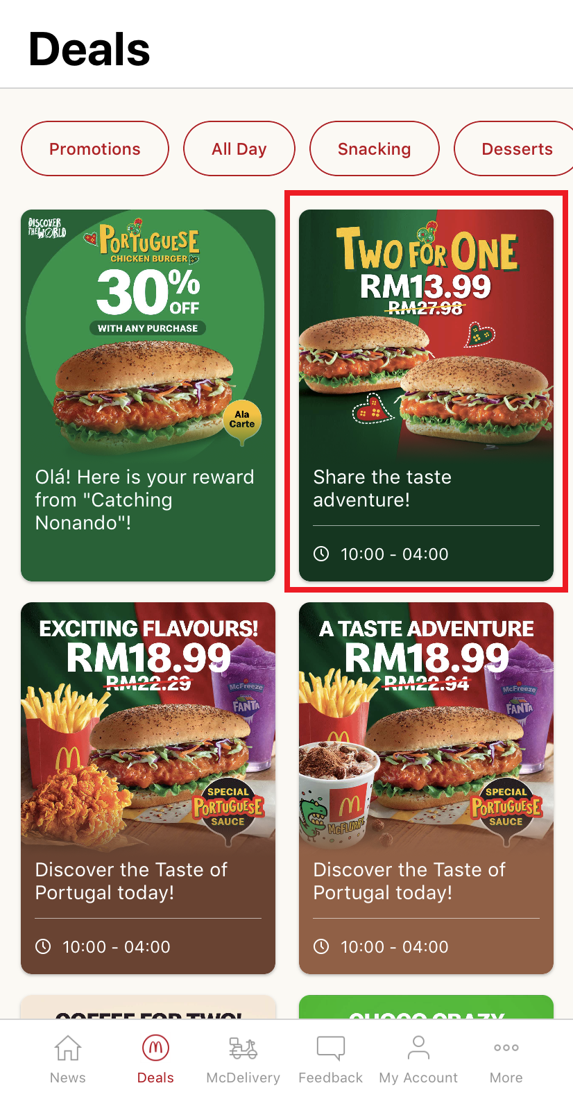 现在,MCD再次推出Portuguese Chicken Burger 买一送一的优惠哦!