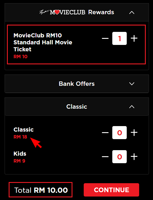 ※只需RM10就能买到RM18的普通电影票,相等于获得44%的折扣!