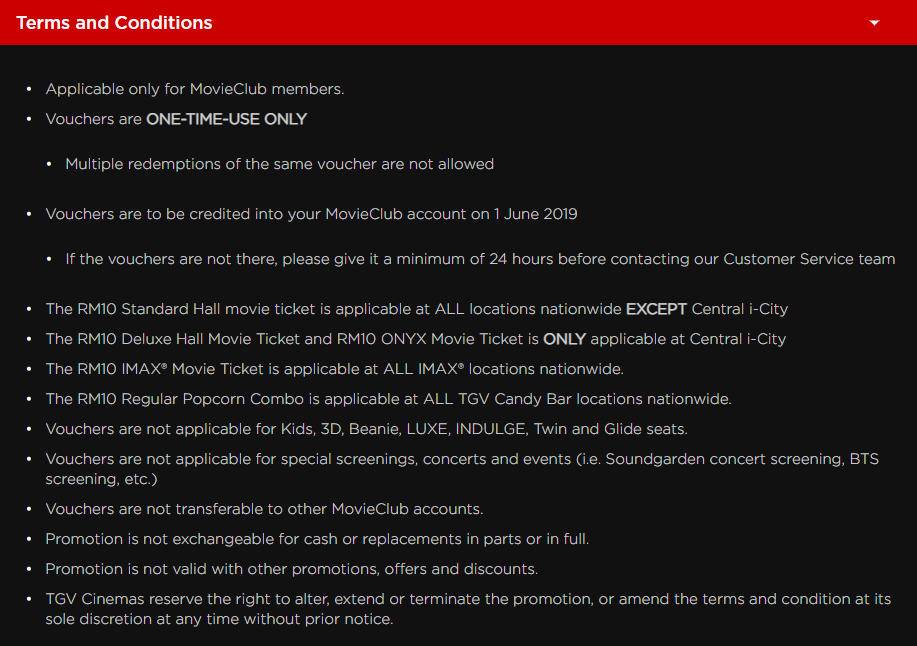 TGV 电影院在这个月送出 6 张礼券给 TGV 会员们(MovieClub)!而该礼券就是电影票只需 RM10 !此外还有爆米花配套也是只需 RM10 !