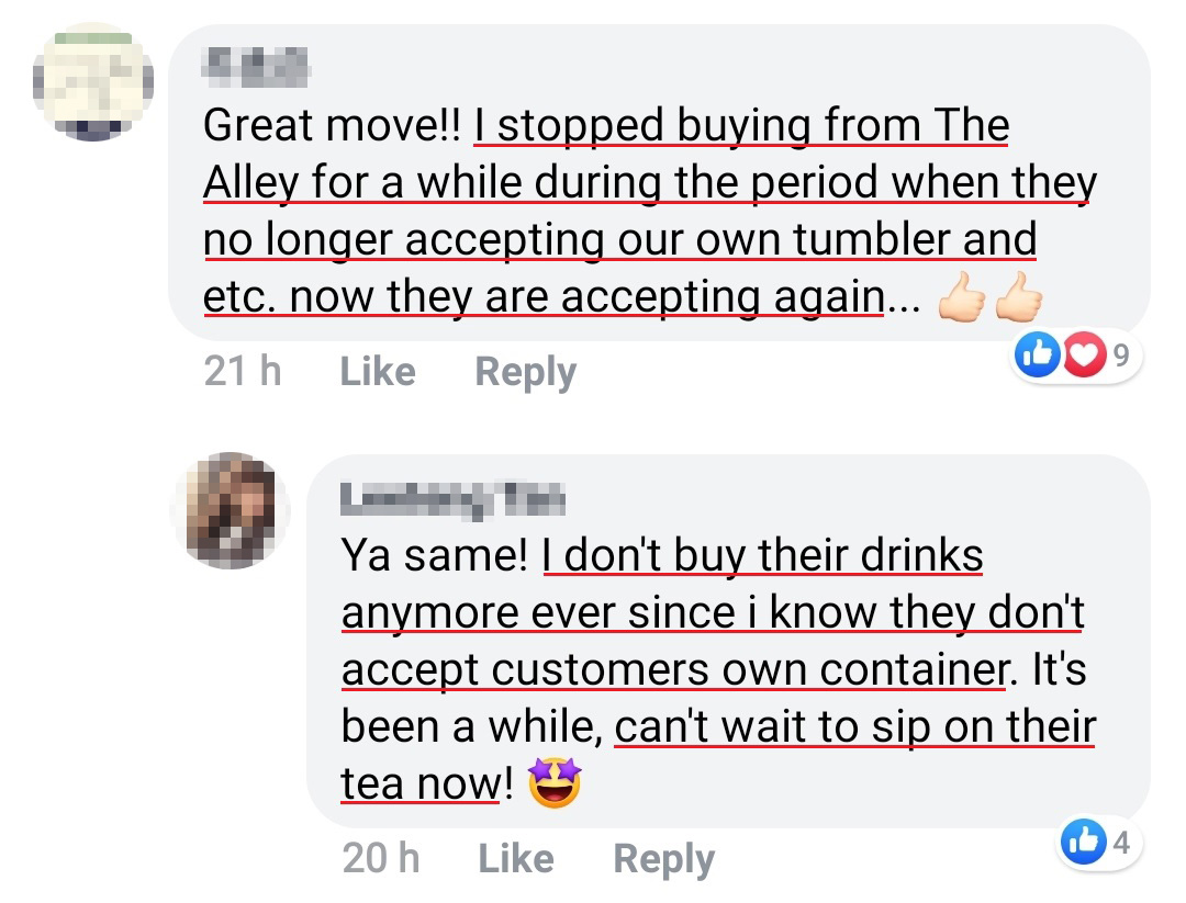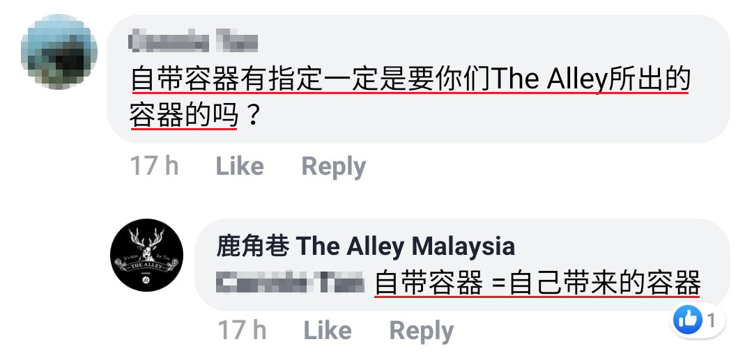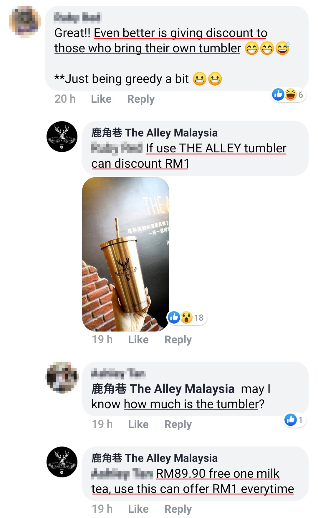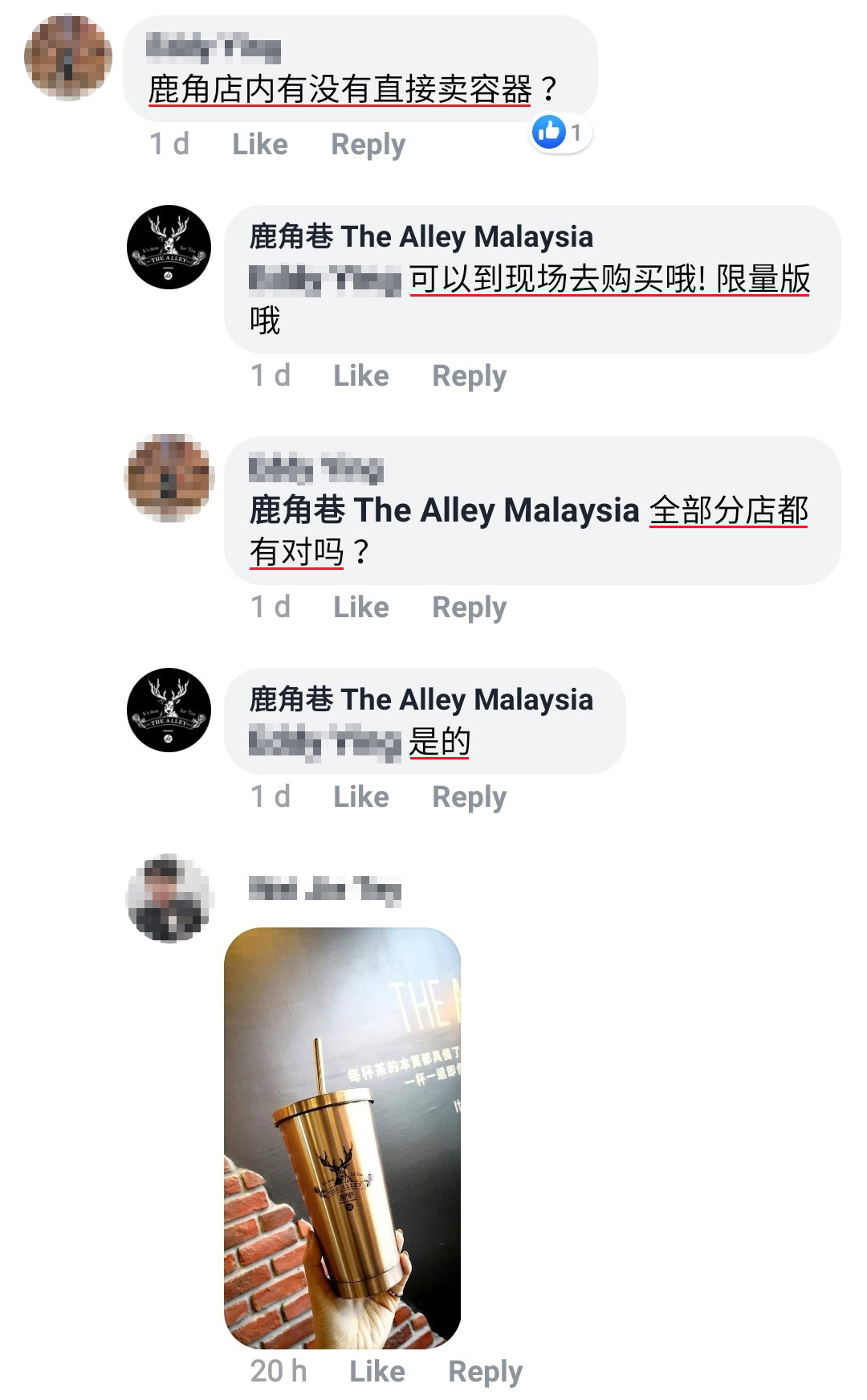 ▼ 不过据不久前网友们的透露,大马几乎所有奶茶店都允许顾客自带杯子,除了鹿角巷(The Alley)!