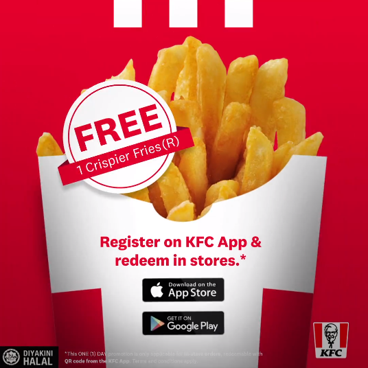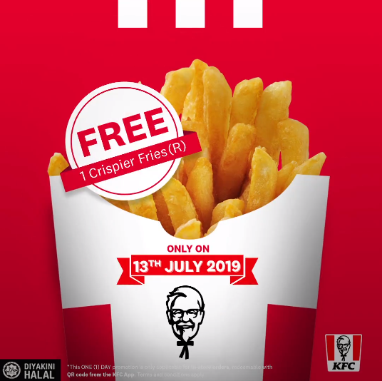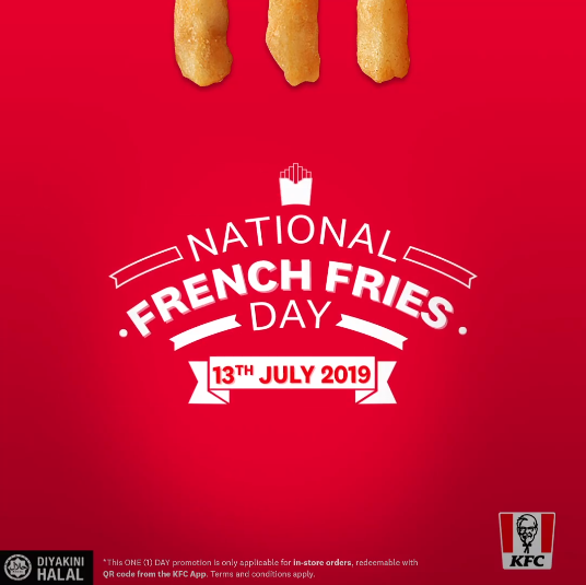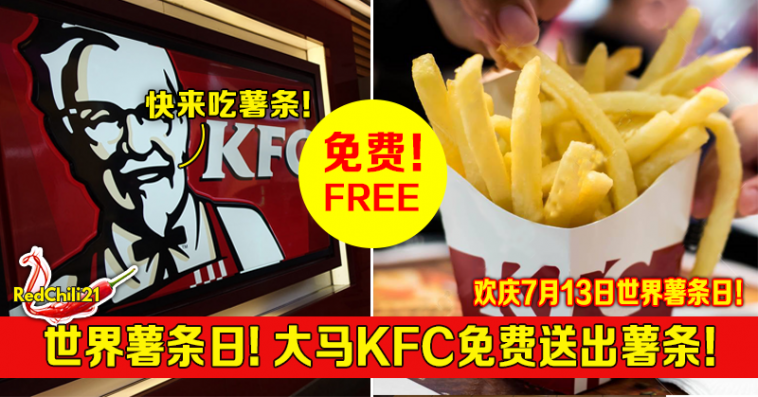 为了欢庆世界薯条日,KFC特推出了新促销优惠——可以免费获得薯条!!