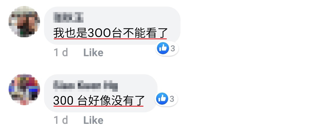 ▼ 网友们看到该帖文后,也纷纷留言表示:「300台确实看不到了,下一个被停播的可能就是 AEC 了。」