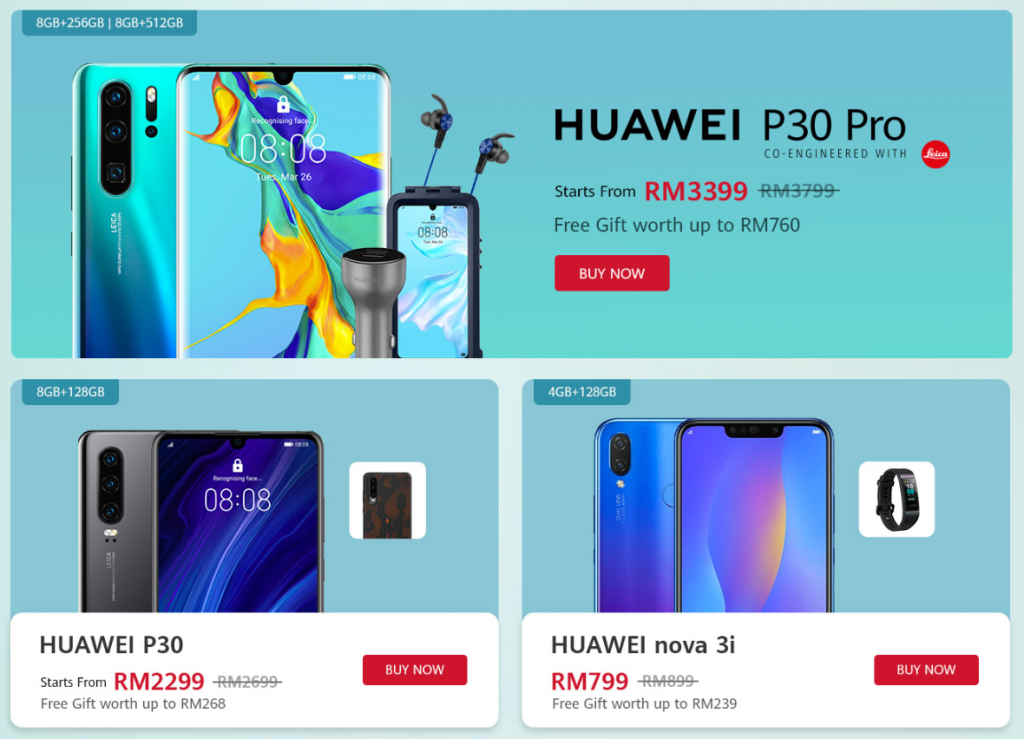 1)Huawei P30 Pro (256GB):RM3399 附上RM760的赠品。